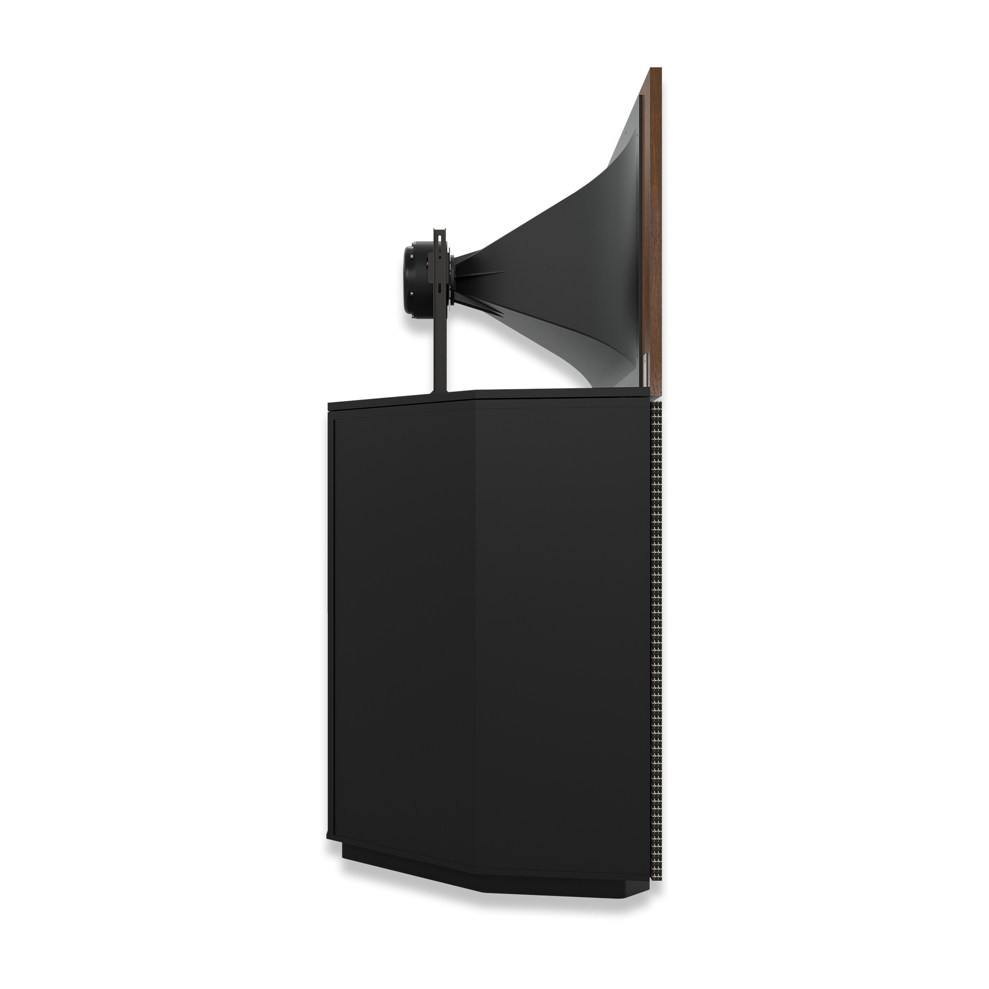 The patented low frequency enclosure of the Klipsch Jubilee is designed to provide magnificent presence, by leveraging the efficiencies of both horn-loaded and vented systems. The typical vented system already increases the efficiency and sensitivity for extended low frequency performance. Horn-loading this system allows the Klipsch Jubilee to be a staggering 10 to 20 times more efficient than a conventional loudspeaker. This results in unrivaled low frequency performance, maximizing output while minimizing distortion, for dynamic and clean bass.